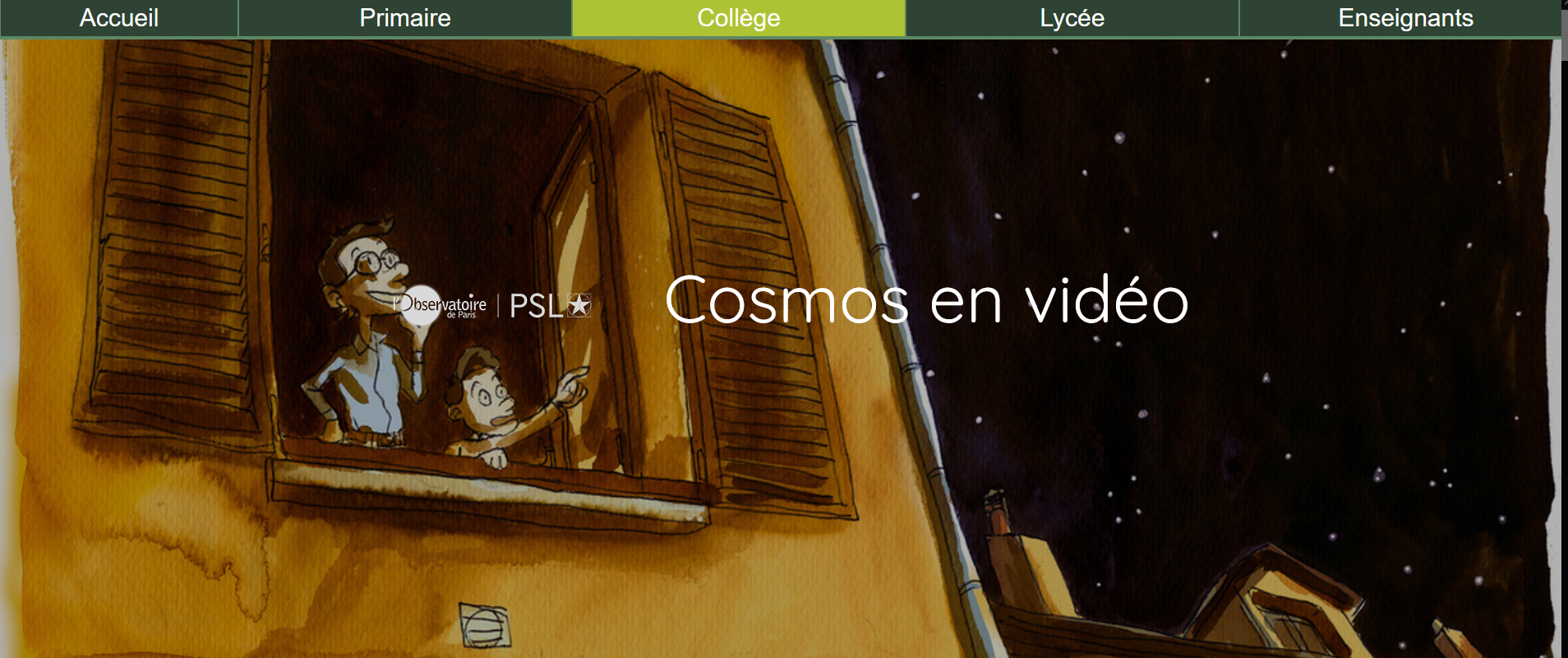Cosmos en vidéo : un site de ressources classées par niveau scolaire