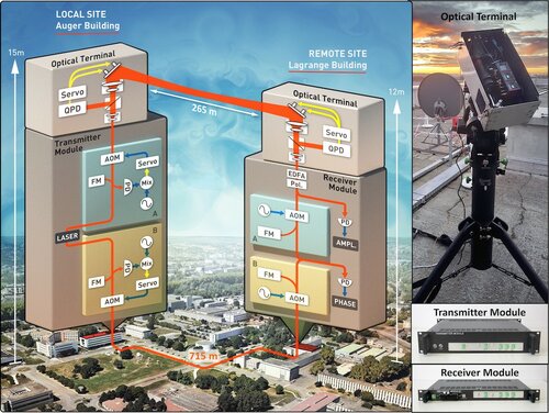 La comparaison des échelles de temps entre les horloges atomiques optiques sur les liaisons laser sol-espace et les liaisons laser terrestres en espace libre aura d’énormes avantages pour les sciences fondamentales et appliquées.